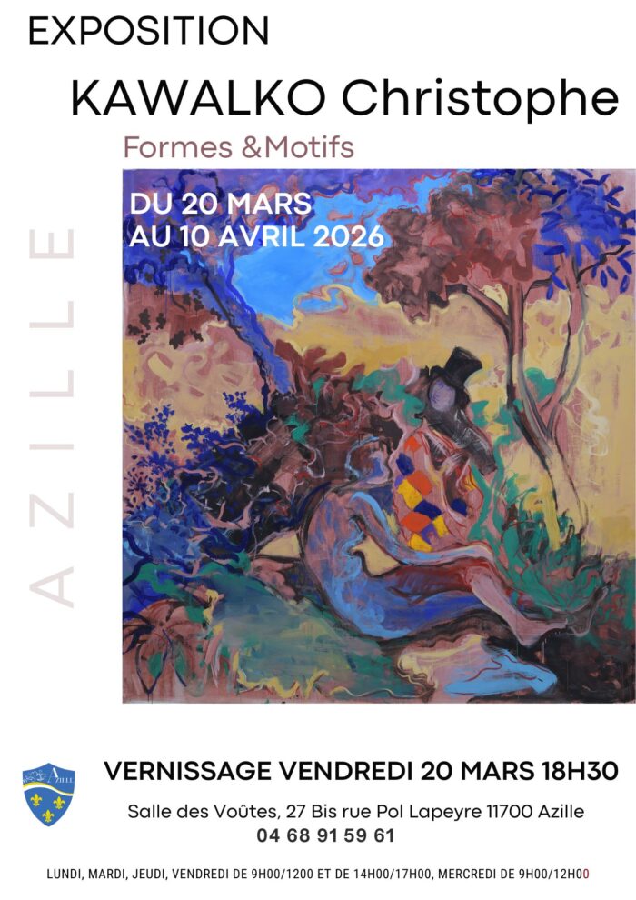 Pour sa deuxième exposition de la saison, la commune d’Azille a le plaisir d’accueillir l’artiste Christophe Kawalko avec sa nouvelle exposition Formes et Motifs, du 20 mars au 10 avril 2026.